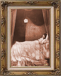 Camellias, as she lies in bed on the eve of her dissolution.